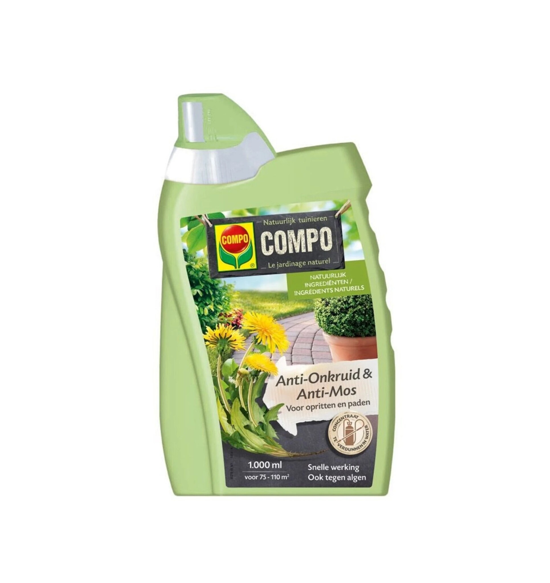 COMPO Anti-Onkruid & Anti-Mos is een geconcentreerd product. De vloeistof moet gemengd worden met water: