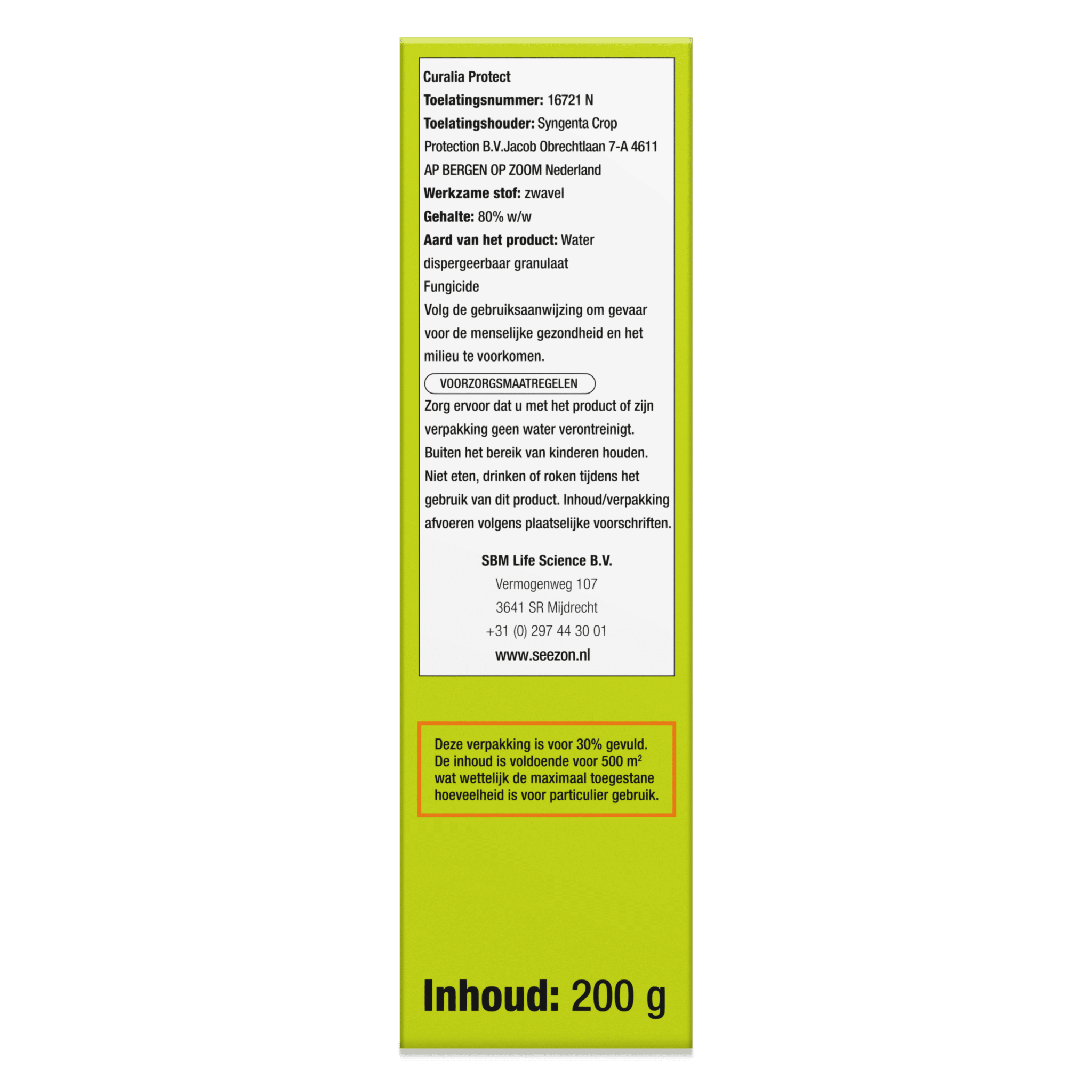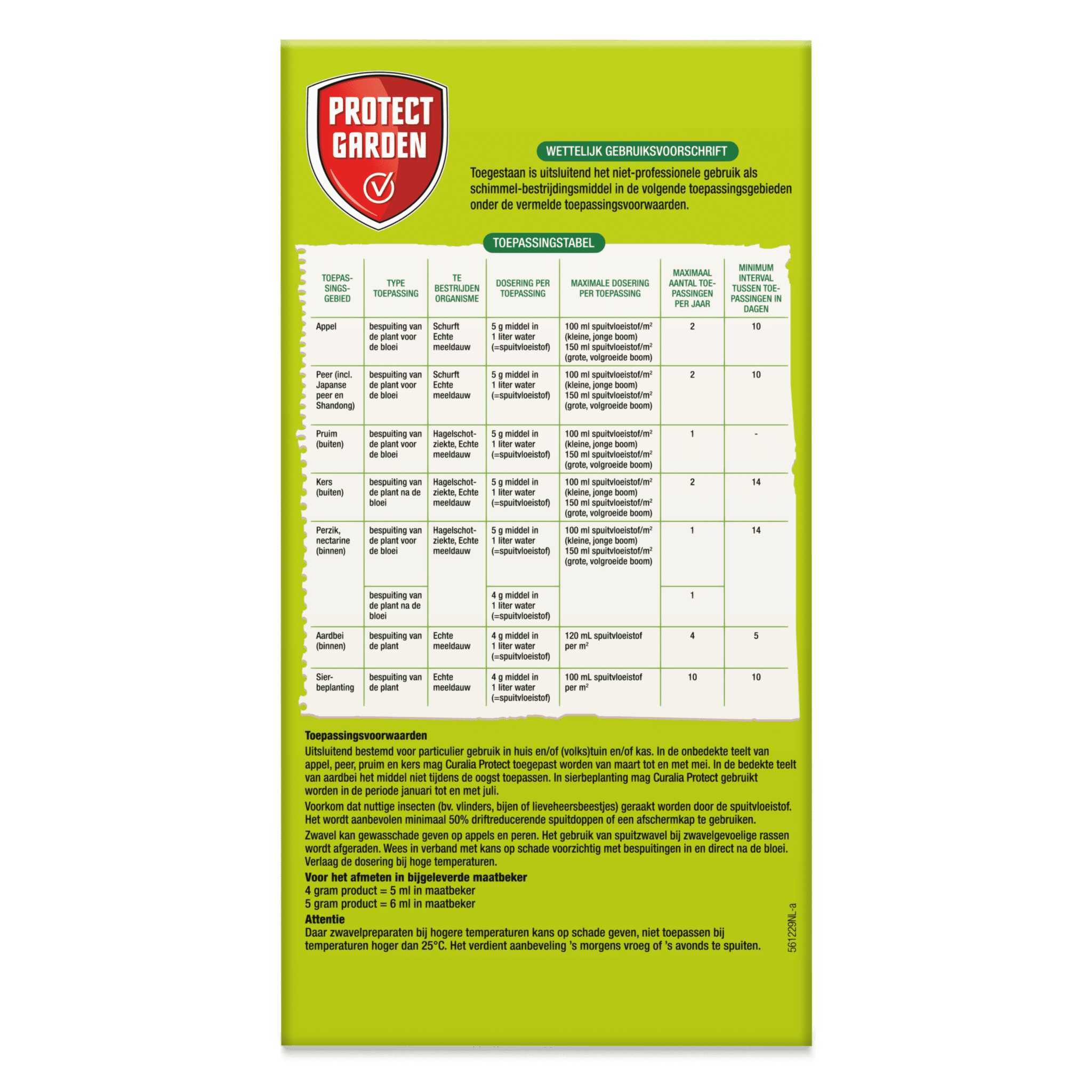 Attentie: Omdat zwavelpreparaten bij hogere temperaturen kans op schade geven niet toepassen bij temperaturen hoger dan 25* C.