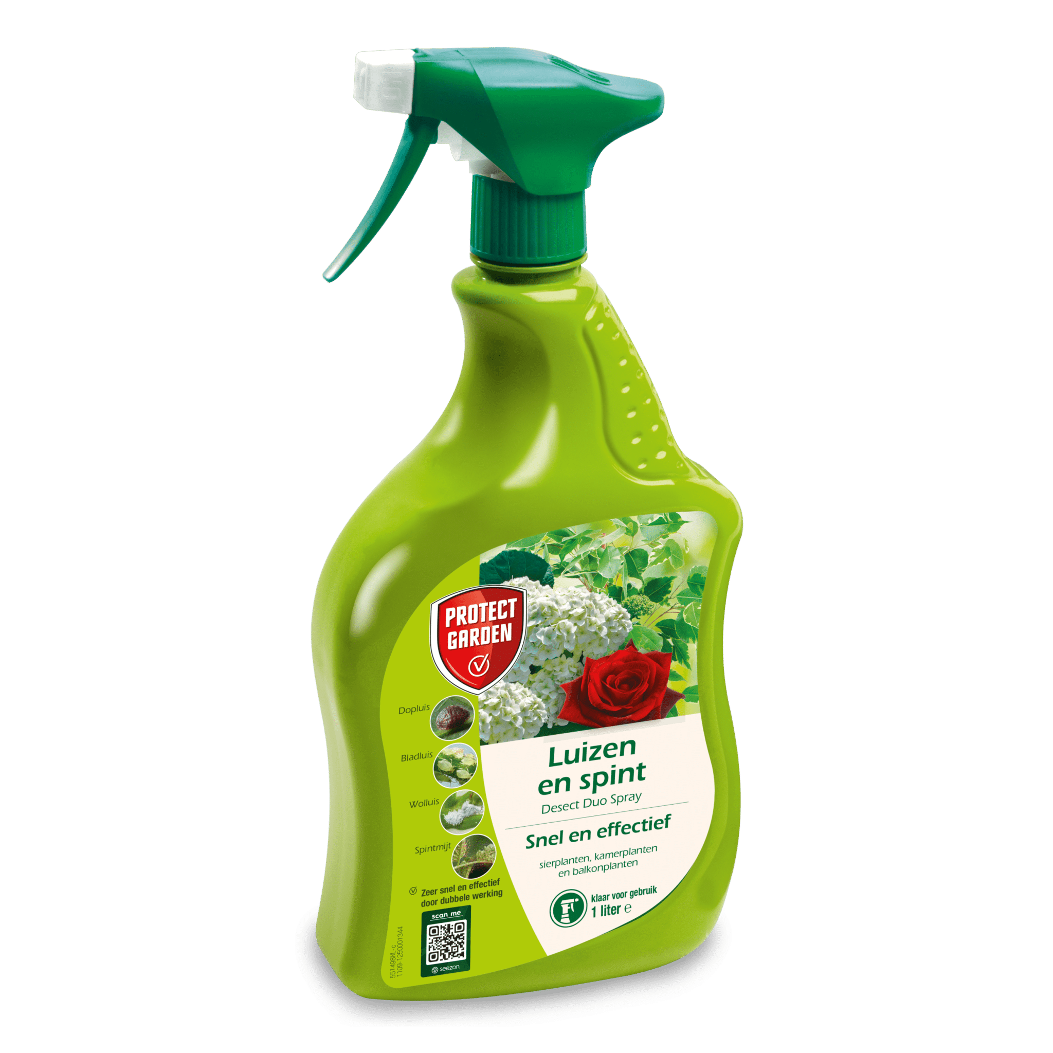 Desect Duo spray is een kant en klaar middel tegen insecten en spint op kamerplanten, sierplanten en balkonplanten. Desect Duo spray is een contactinsecticide en heeft geen systemische werking. De te bestrijden insecten dienen dus goed geraakt te worden.