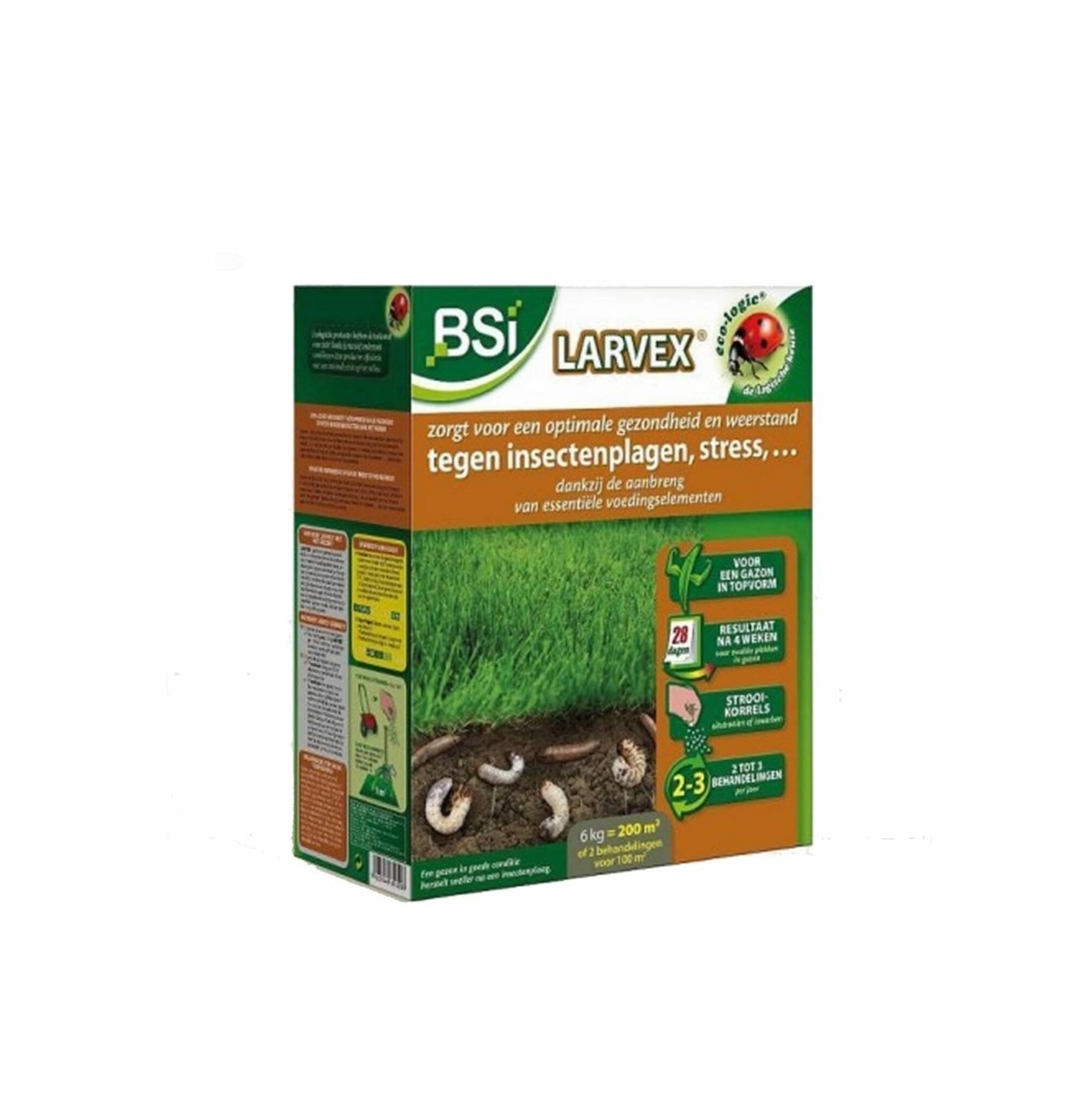 LARVEX verdrijft op een ecologische en bijzonder krachtige manier engerlingen, emelten en andere bodeminsecten. Dit product heeft een complexe samenstelling met uitsluitend natuurlijke grondstoffen. Larvex verhoogt de planteigen weerstand van het gazon tegen de nadelige gevolgen van bodeminsecten. Door sterke stimulatie van de grasplant, onder meer door toegevoegde voedingselementen, gaat het gazon een krachtig nieuw wortelstelsel ontwikkelen. 3 à 4 weken na de behandeling groeit het gazon opnieuw keurig dicht.