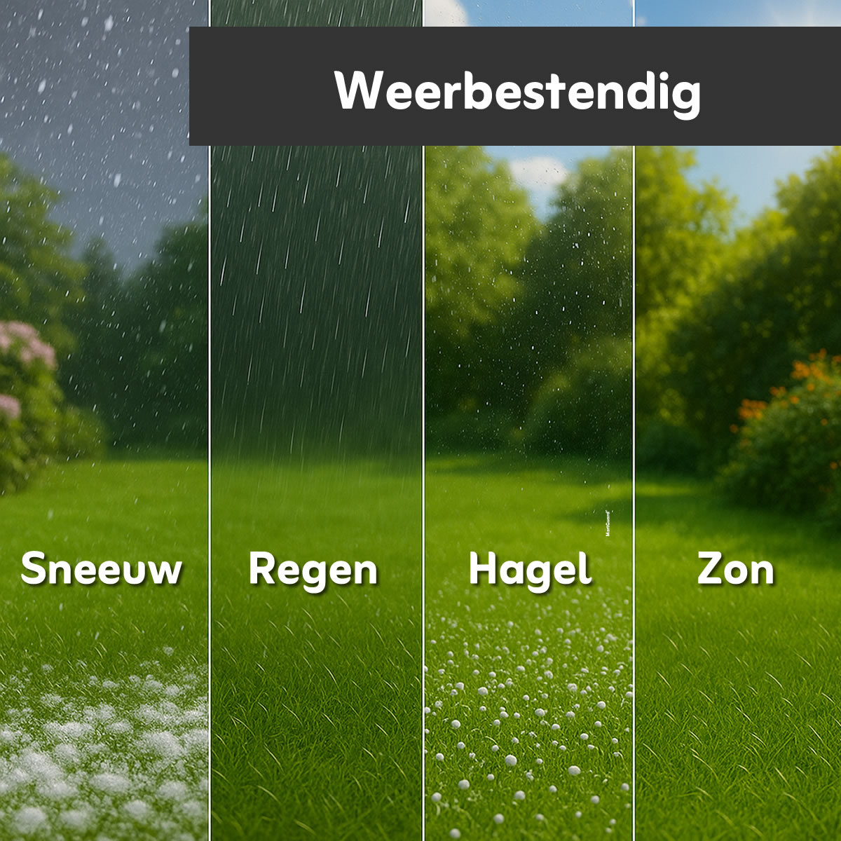 • 100% waterdicht (IP65) en weerbestendig (zon, sneeuw, regen, hagel etc.)