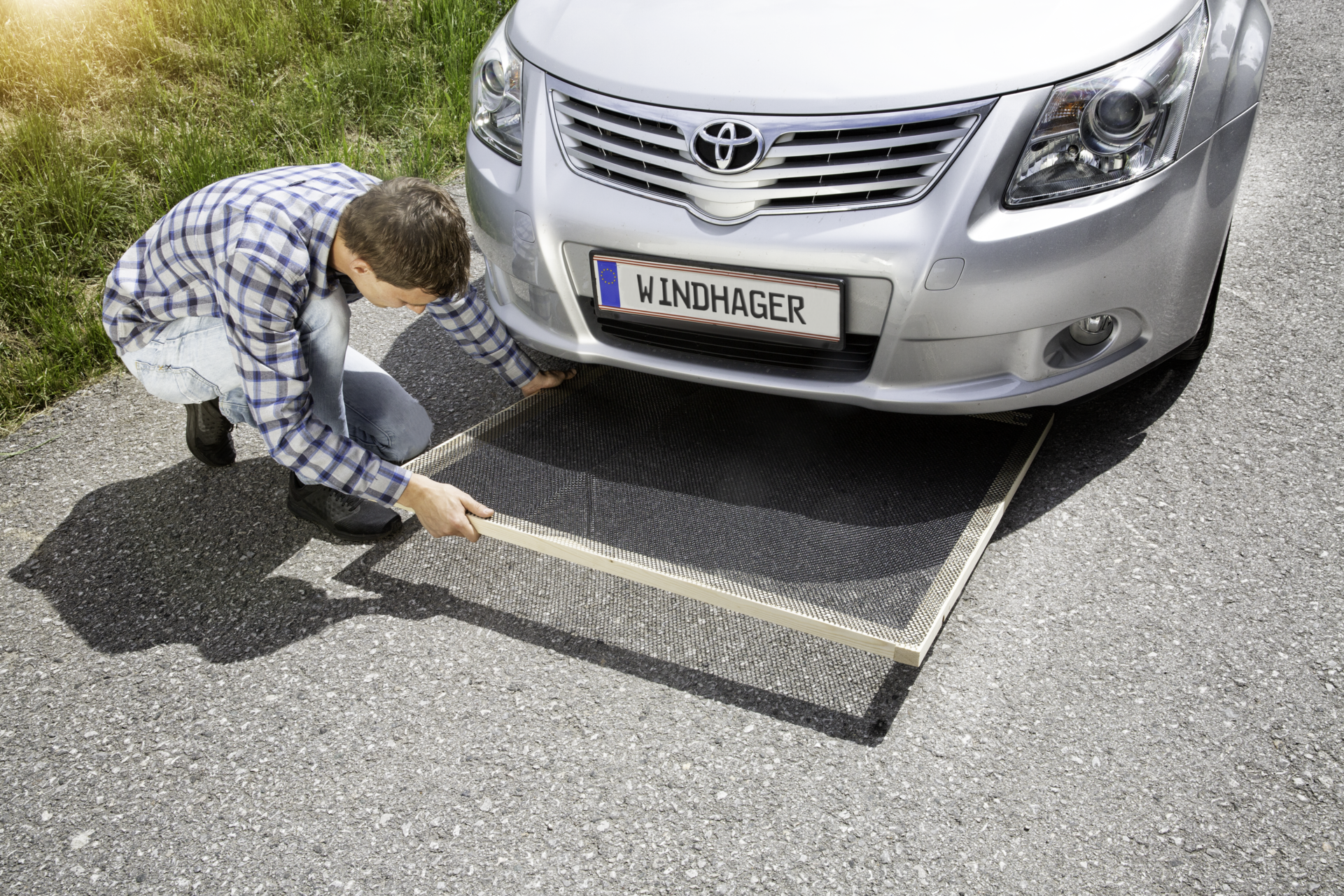 - Eenvoudig in gebruik, leg de mat onder de parkeerplek van de auto