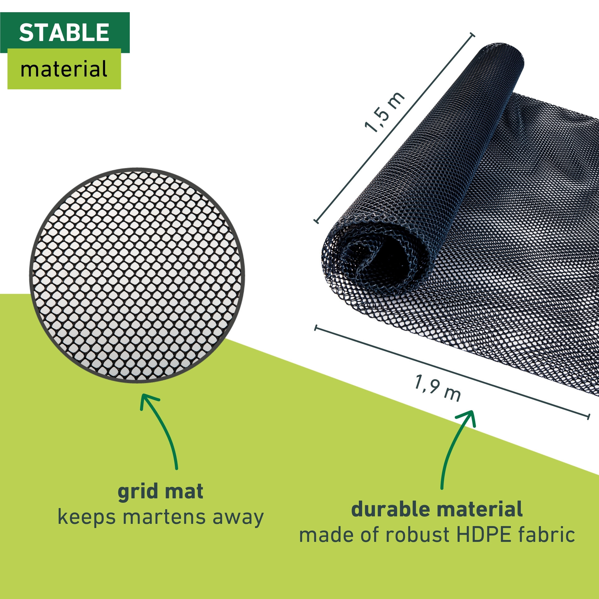 Dankzij het lichte en oprolbare ontwerp neemt u de mat gemakkelijk mee op reis, of bevestigt u deze permanent op uw vaste parkeerplek. De Windhager No More Bite marterbeschermmat voor auto biedt zo een duurzame, diervriendelijke en onderhoudsvrije bescherming tegen marterschade.